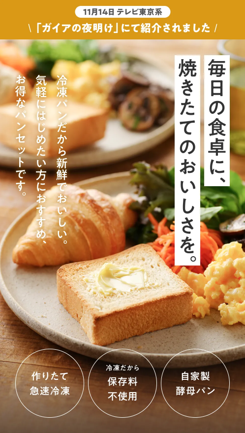 そんなプロも認める冷凍パンがご自宅のトースターで約10分焼いていただくだけで焼きたての美味しい状態で味わえちゃいます。